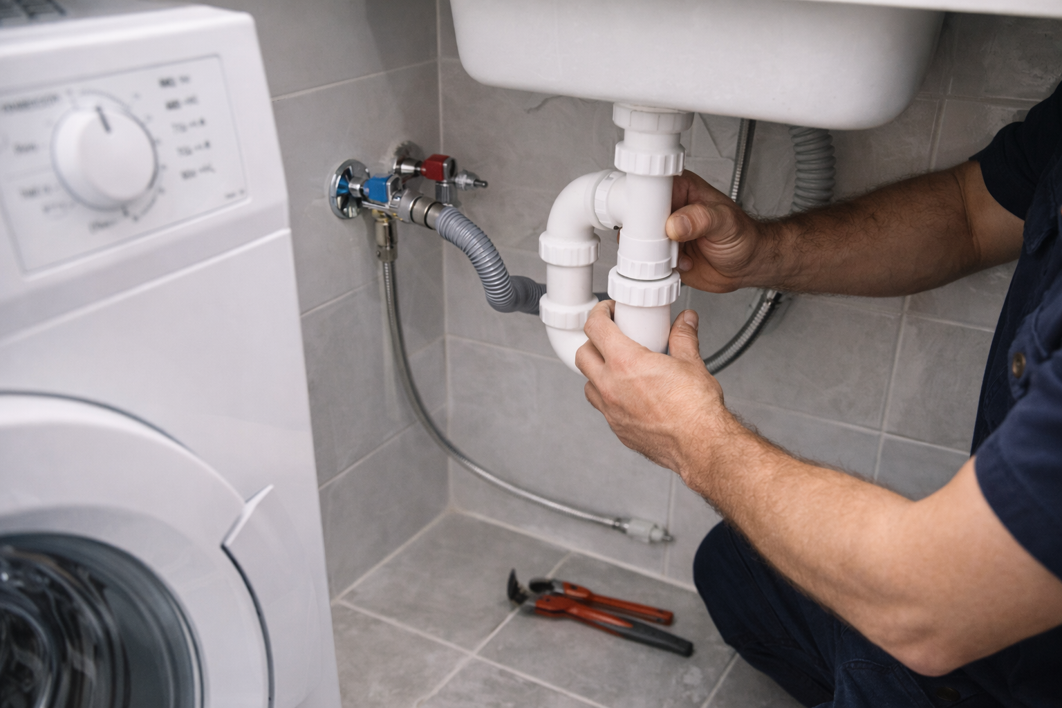 Waschmaschinenanschluss, Siphon, kleine Rohrarbeiten.